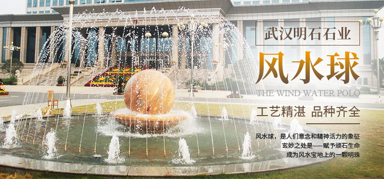 武汉明石石业有限公司——是一家专门生产风水球的石材企业,公司成立之前加工制造风水球有20余年,2007年成立公司以来,生产各种型号材质的风水球有上千套,其中规模以上的风水球(球体直径1米以上)达到500余套,风水球销往全国各地,包括上海市浦发大厦2米直径风水球,江西九江银行门口水池风水球,内江市四川金镭铸业公司水池黄锈石风水球,广西钦州力顺机械厂大型风水球,杭州天工艺苑酒店大厅风水球.......多处经典案例,并将风水球出口到美国加州、德国汉堡、印尼、泰国、香港等地。我公司有风水球生产线三条,大型圆球数控机磨光机10余台,专业风水球加工、调试、维修师傅二十余人,技术力量雄厚,做工精湛,服务一流,欢迎广大客户来电来厂咨询。
